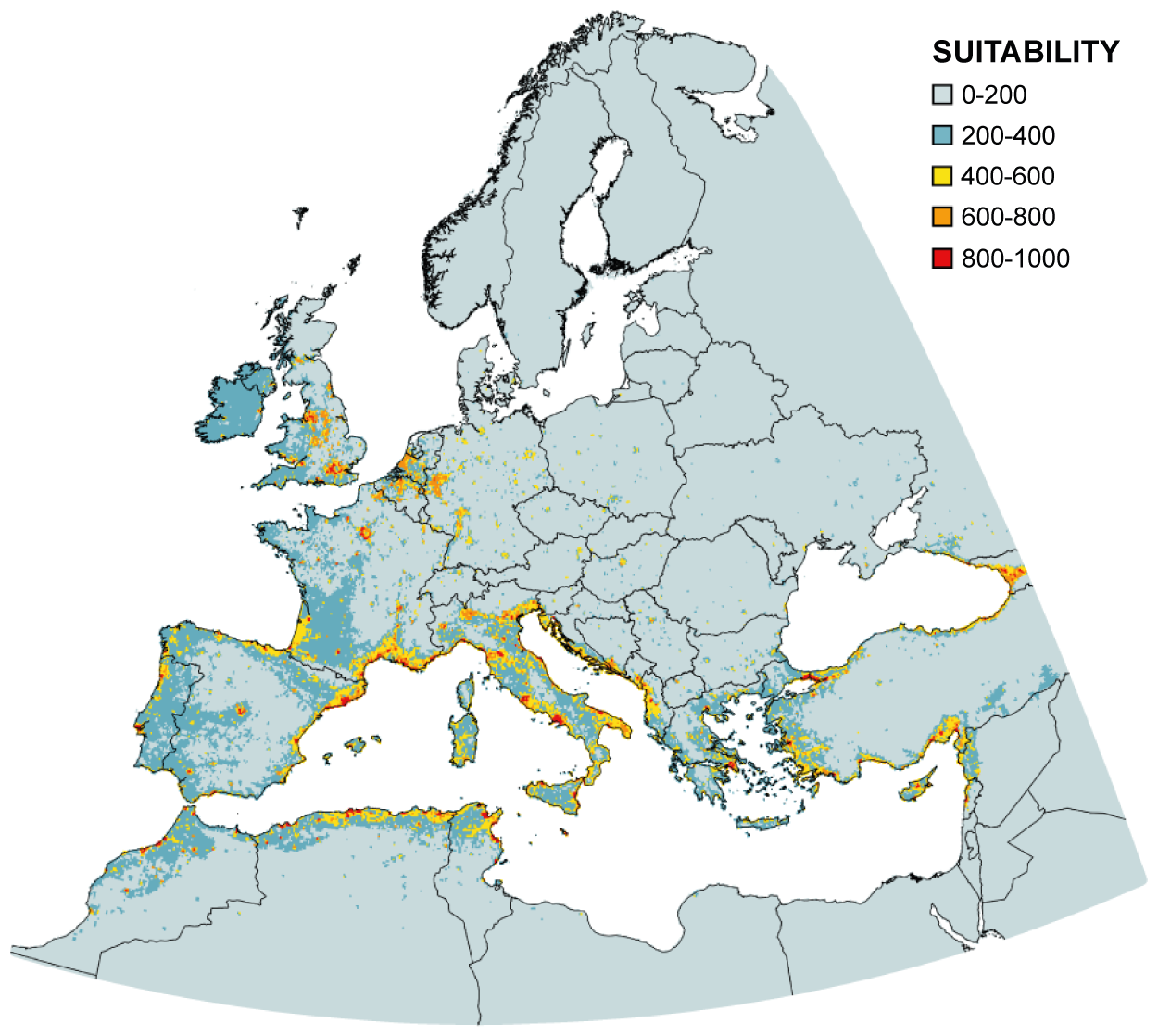 Utilitzant models de distribució desenvolupats en col·laboració amb el CREAF, a partir de les condicions ambientals actuals, l'estudi conclou que aquesta espècie invasora podria establir-se en el 7% del continent, aproximadament.