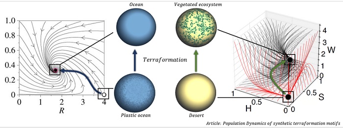 ARTICLE: Solé R, Montañez R, Duran-Nebreda S, Rodriguez-Amor D, Vidiella B, Sardanyés J. Population dynamics of synthetic terraformationmotifs. R. Soc. Open sci, 2018. http://dx.doi.org/10.1098/rsos.180121