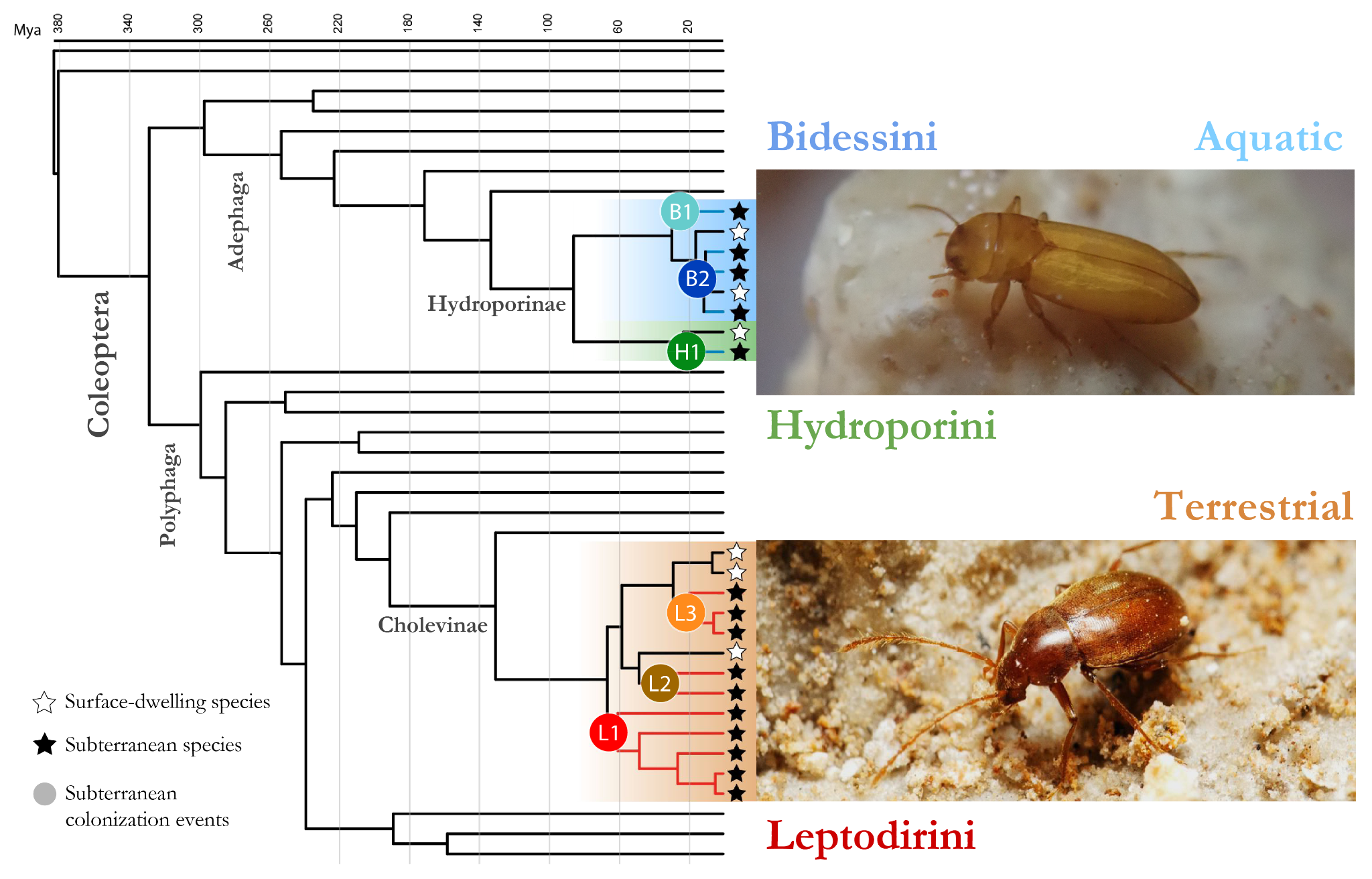 L'estudi liderat per Rosa Fernández, investigadora de l'Institut de Biologia Evolutiva, un centre mixt del CSIC i la UPF (IBE, CSIC-UPF), va comparar diferents llinatges d'escarabats terrestres i aquàtics dels quals diverses espècies havien aconseguit colonitzar el món subterrani de manera independent, i va descobrir que tots dos grups compartien un augment en la variabilitat genètica que va facilitar la seva posterior adaptació a les coves. Segons els resultats, els canvis en el repertori de gens que posteriorment facilitarien la seva adaptació a aquest medi subterrani van succeir milions d'anys abans d'endinsar-se en ell.