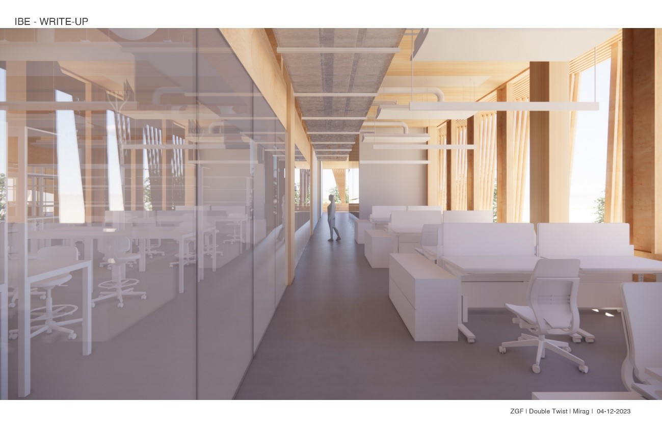 Dentro del edificio del IBE. Credito a ZFG, Double Twist y Mirag.