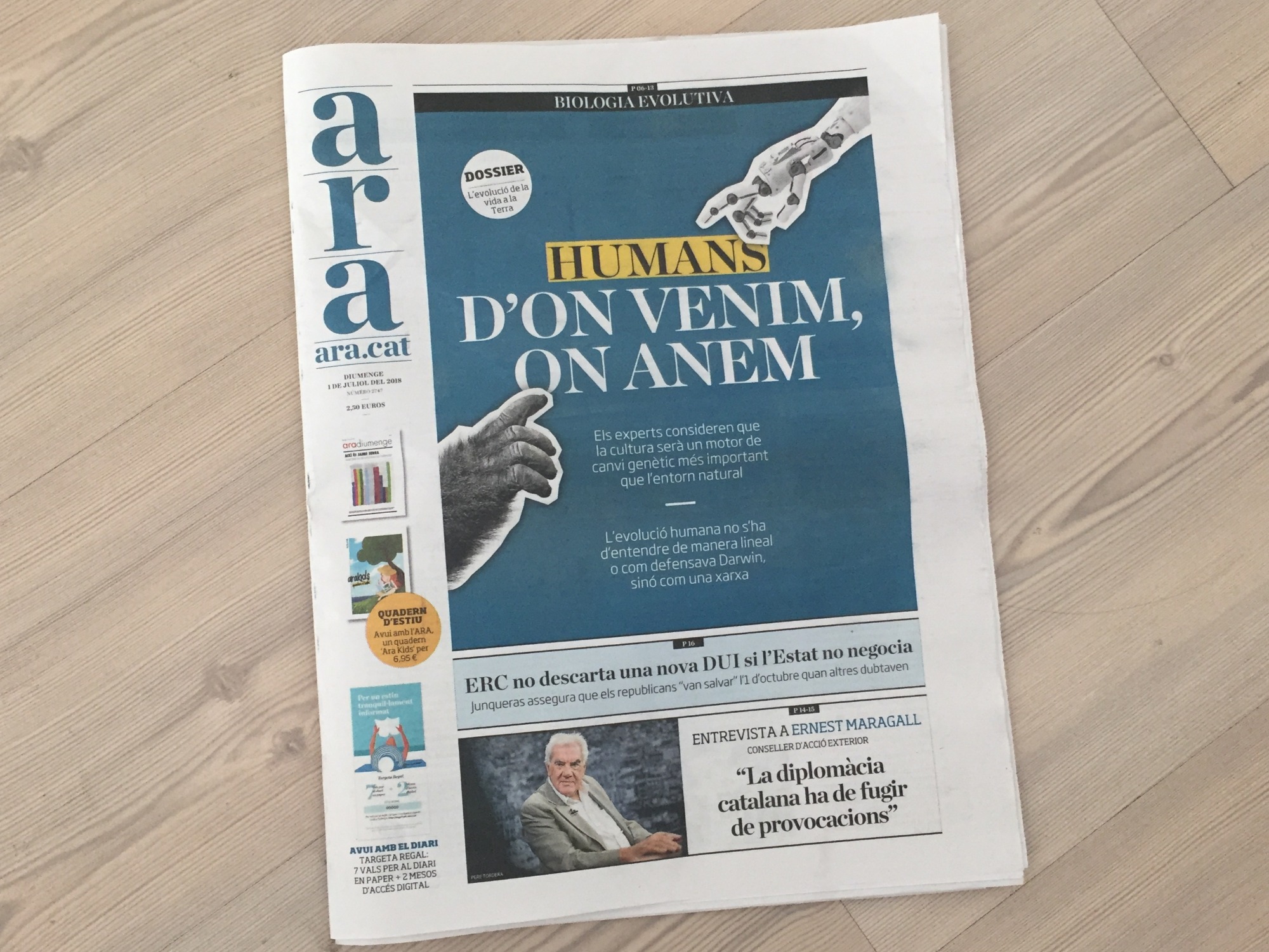 Catalan newspaper ARA devotes its Sunday edition to evolutionary biology and to IBE
