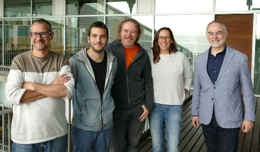 De izquierda a derecha: Tomàs Marquès-Bonet, Alejandro Valenzuela, David Juan, Esther Lizano y Arcadi Navarro. Investigadores IBE - UPF participantes en el estudio. Crédito: IBE y UPF.