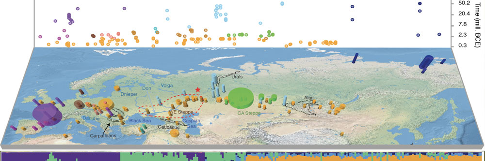 Librado P, Tressières G, Chauvey L, Fages A, Khan N, Schiavinato S, Calvière-Tonasso L, Kusliy MA, Gaunitz C, Liu X, Wagner S, Der Sarkissian C, Seguin-Orlando A, Perdereau A, Aury JM, Southon J, Shapiro B, Bouchez O, Donnadieu C, Collin YRH, Gregersen KM, Jessen MD, Christensen K, Claudi-Hansen L, Pruvost M, Pucher E, Vulic H, Novak M, Rimpf A, Turk P, Reiter S, Brem G, Schwall C, Barrey É, Robert C, Degueurce C, Horwitz LK, Klassen L, Rasmussen U, Kveiborg J, Johannsen NN, Makowiecki D, Makarowicz P, Szeliga M, Ilchyshyn V, Rud V, Romaniszyn J, Mullin VE, Verdugo M, Bradley DG, Cardoso JL, Valente MJ, Antunes MT, Ameen C, Thomas R, Ludwig A, Marzullo M, Prato O, Gianni GB, Tecchiati U, Granado J, Schlumbaum A, Deschler-Erb S, Mráz MS, Boulbes N, Gardeisen A, Mayer C, Döhle HJ, Vicze M, Kosintsev PA, Kyselý R, Peške L, O'Connor T, Ananyevskaya E, Shevnina I, Logvin A, Kovalev AA, Iderkhangai TO, Sablin MV, Dashkovskiy PK, Graphodatsky AS, Merts I, Merts V, Kasparov AK, Pitulko VV, Onar V, Öztan A, Arbuckle BS, McColl H, Renaud G, Khaskhanov R, Demidenko S, Kadieva A, Atabiev B, Sundqvist M, Lindgren G, López-Cachero FJ, Albizuri S, Trbojević Vukičević T, Rapan Papeša A, Burić M, Rajić Šikanjić P, Weinstock J, Vilaró DA, Codina F, Dalmau CG, de Llorens JM, Pou J, de Prado G, Sanmartí J, Kallala N, Torres JR, Maraoui-Telmini B, Belarte Franco MC, Valenzuela-Lamas S, Zazzo A, Lepetz S, Duchesne S, Alexeev A, Bayarsaikhan J, Houle JL, Bayarkhuu N, Turbat T, Crubézy É, Shingiray I, Mashkour M, Berezina NY, Korobov DS, Belinskiy A, Kalmykov A, Demoule JP, Reinhold S, Hansen S, Wallner B, Roslyakova N, Kuznetsov PF, Tishkin AA, Wincker P, Kanne K, Outram A, Orlando L. 2024. Widespread horse-based mobility arose around 2,200 BCE in Eurasia. Nature, 631(8022):819-825. DOI:10.1038/s41586-024-07597-5