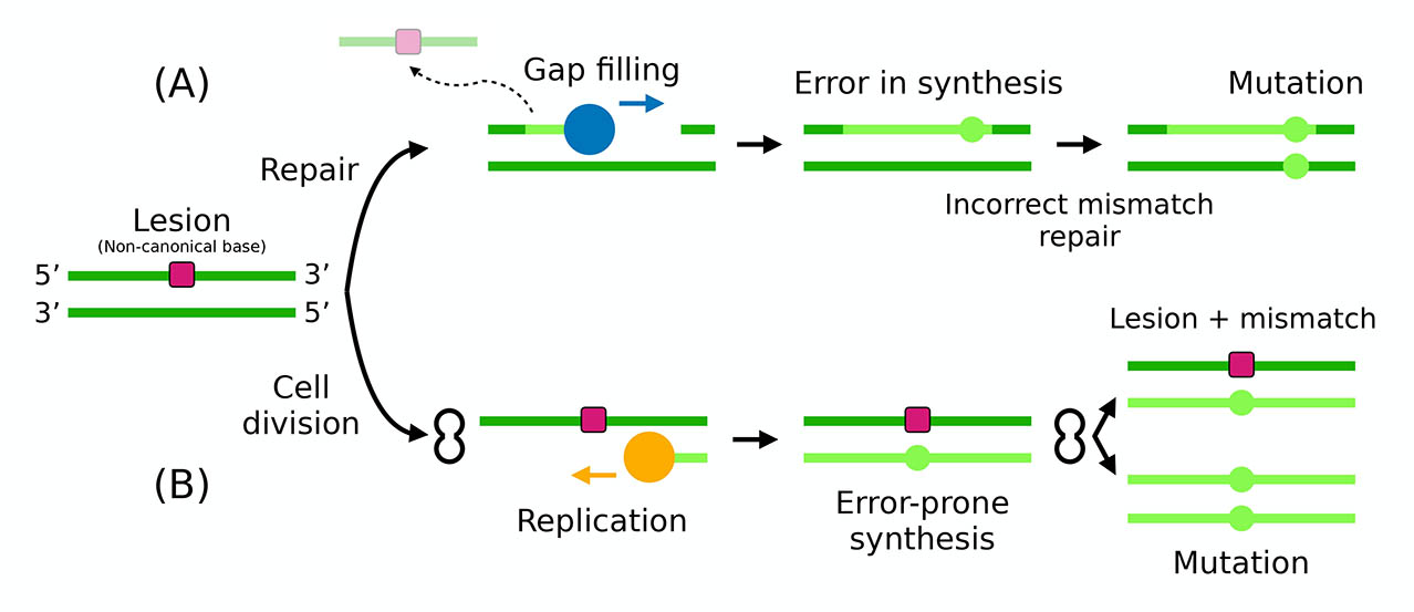 As individuals age, mutations accumulate inexorably in their cells, playing a key role in evolution, aging, and disease. Despite their importance, we still have a poor understanding of how mutations originate, or why some cells accumulate more mutations than others. Our lab aims to learn about how mutations occur—that is, how they originate mechanistically—as well as why their rate of appearance differs across cell types and species—namely, what selective pressures drive mutation rate evolution.