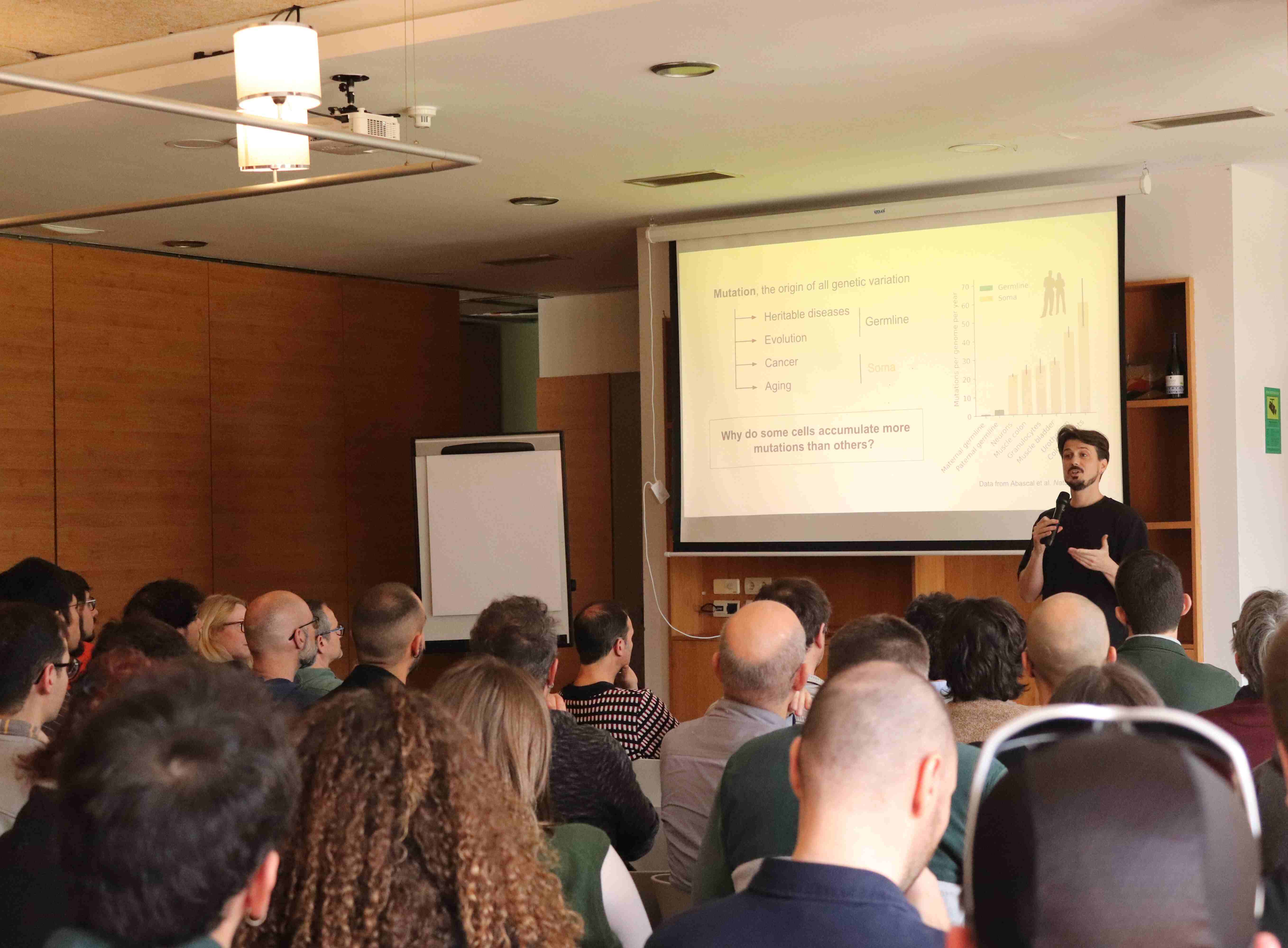 Tot seguit, Marc de Manuel, investigador principal del Mutation Dynamics Lab, va presentar la seva recerca sobre els determinants de la taxa de mutació a diferents escales cel·lulars i evolutives.