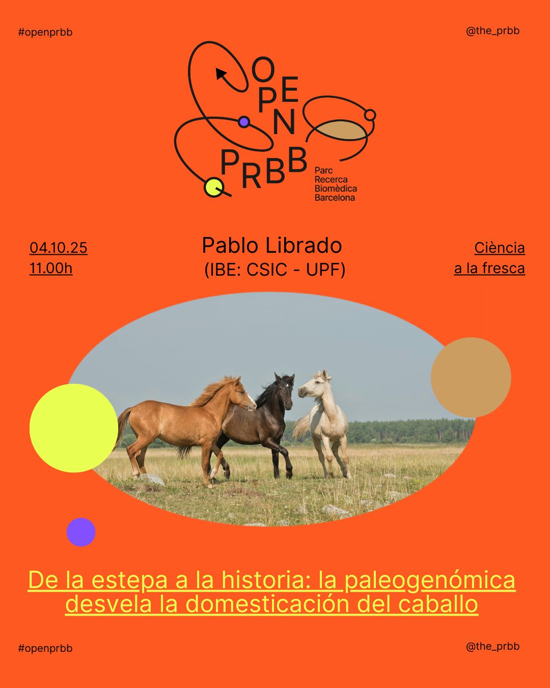 Pablo Librado, investigador principal del grupo de Genómica de poblaciones antiguas del IBE, ofrecerá esta charla de “Ciència a la fresca” en la plaza del PRBB a las 11 h.